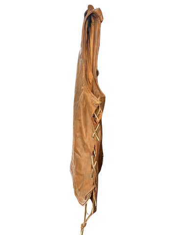 DOUBLE BREASTED LEATHER VEST, TAN SIZE 3XL